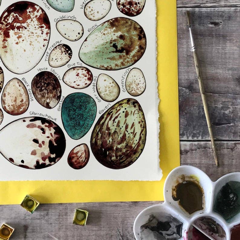 'Eggs of Britain' watercolour illustrated postcard.